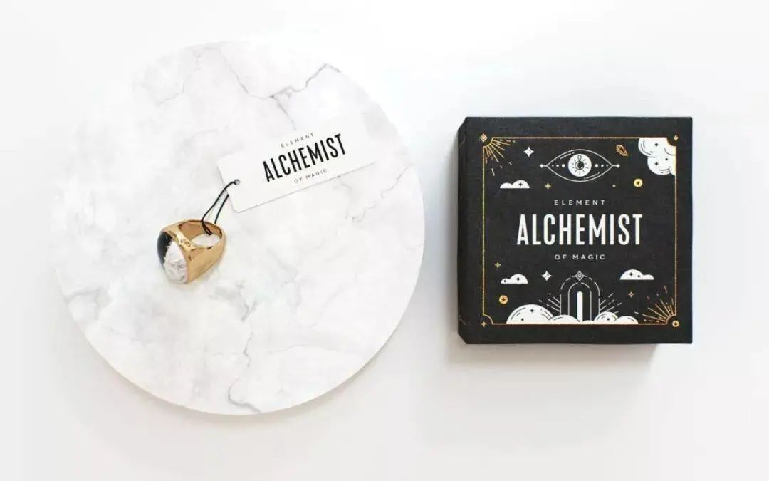 Alchemist主要為深邃的黑色主題。包裝以插畫設(shè)計(jì)為主視覺,并以黑、白、金三色勾勒了云朵、雙手以及珠寶等元素,為其增添了抽象的美感和神秘色彩。